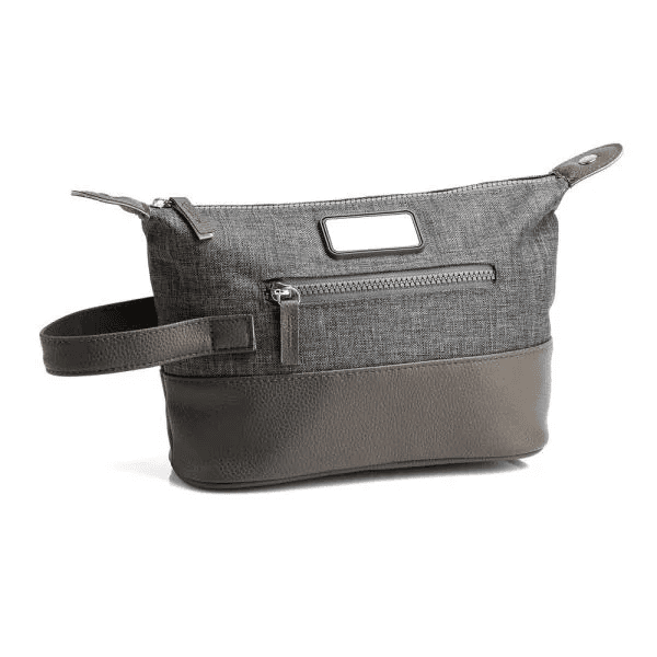 Necessaire Em Poliester 300D Com Detalhes Em Couro - Cinza MA-09122