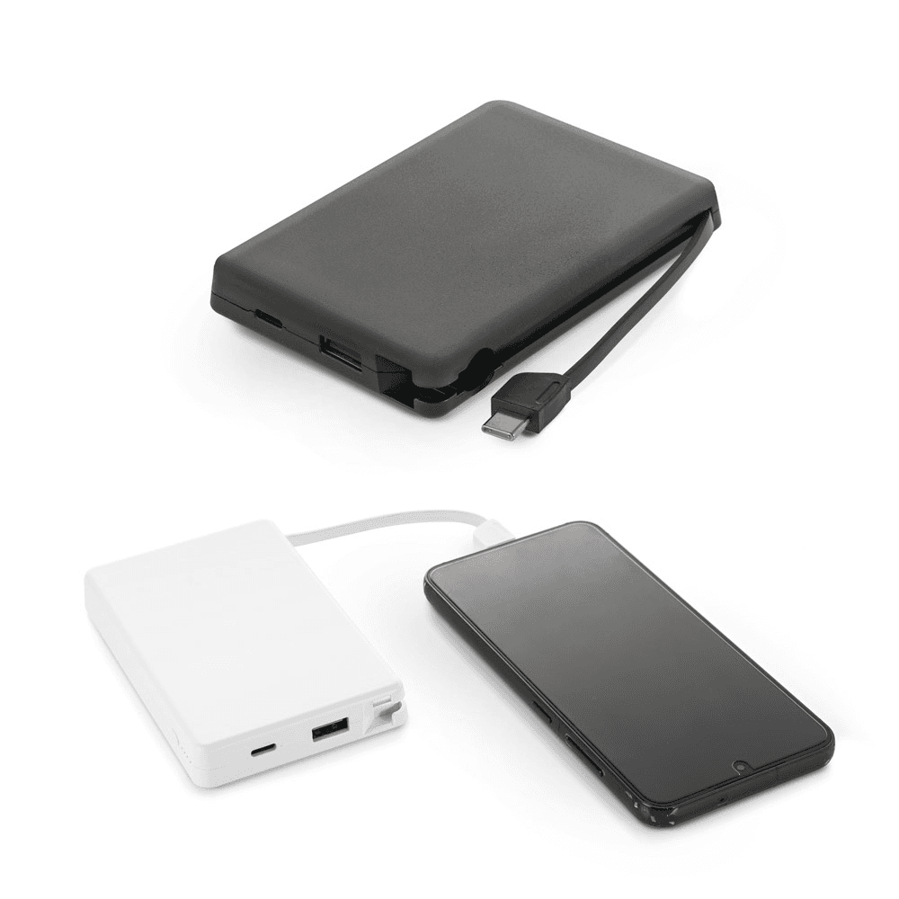97147 LATTES. Bateria portátil em ABS 100% reciclado, com cabo integrado e capacidade de 10.000 mAh